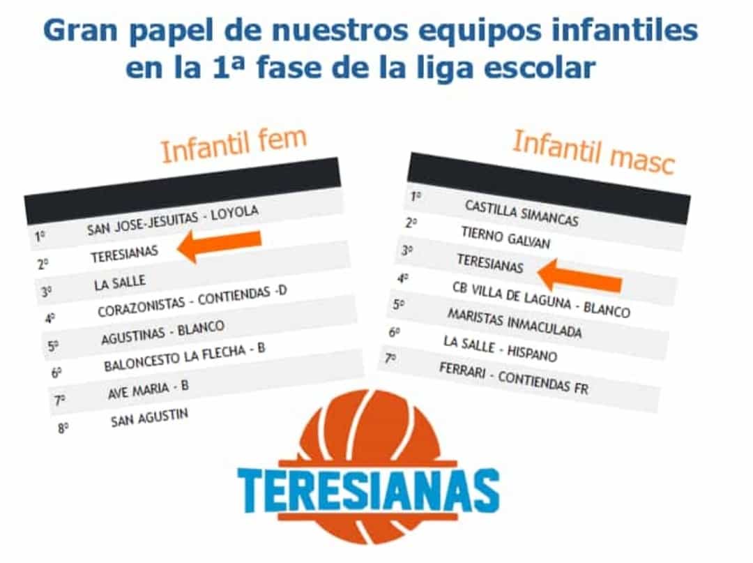Nuestros equipos de baloncesto infantiles (1º y 2º de ESO) ya han finalizado la primera fase de la competición escolar y han realizado un gran trabajo: el equipo femenino ha terminado en segundo lugar, y el masculino en tercero.
